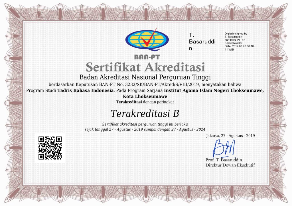 Sertifikat Akreditasi Tadris Bahasa Indonesia