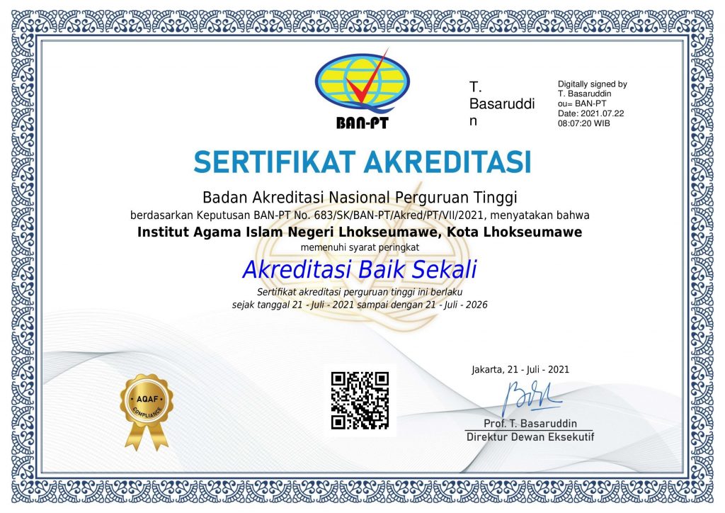 Sertifikat Akreditasi IAIN Lhokseumawe